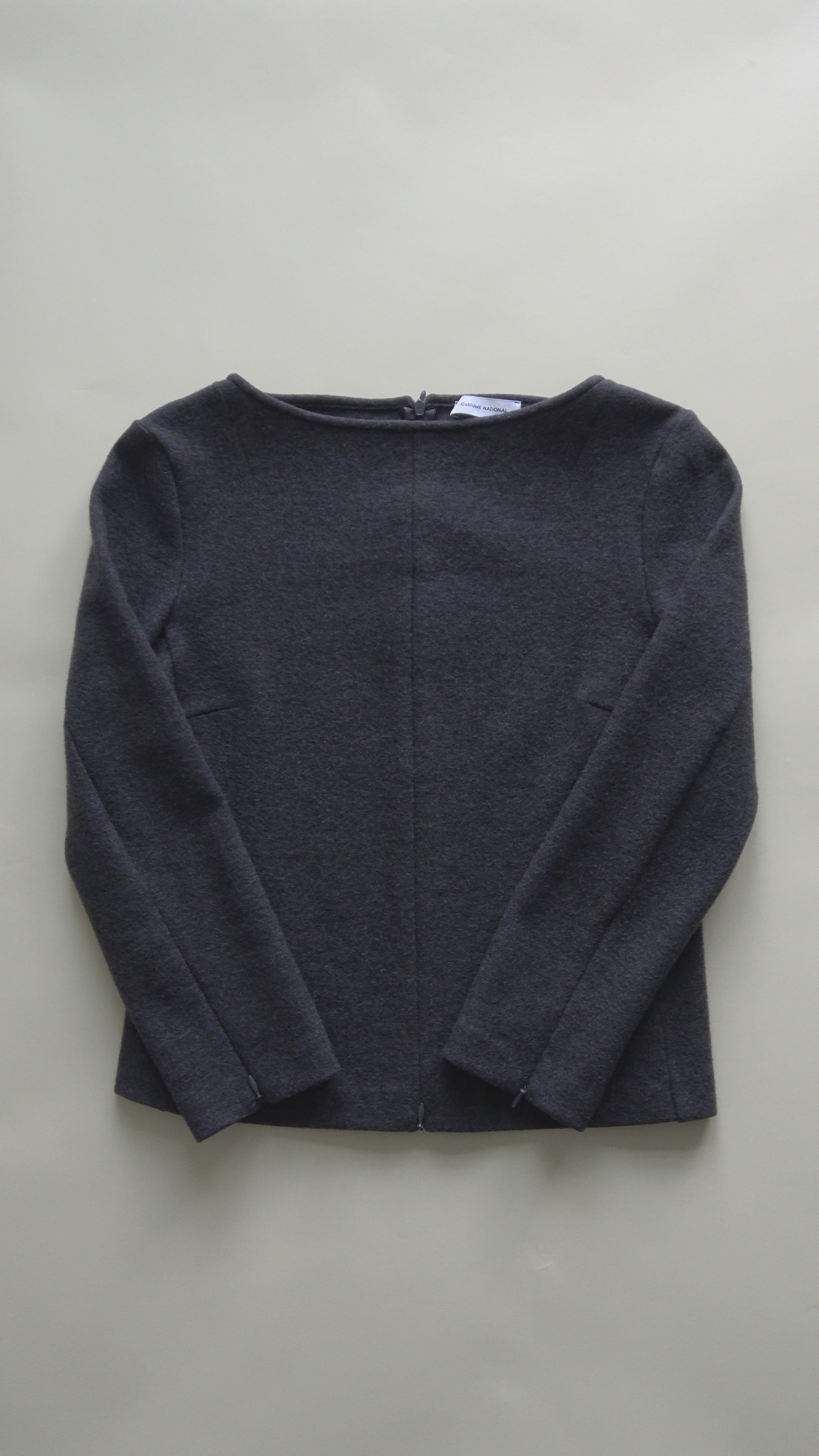 Laura (1,73m) wearing Costume National soft wool set with optional zipper openings. Versatile elevated basics to be worn as a set or styled with other pieces.